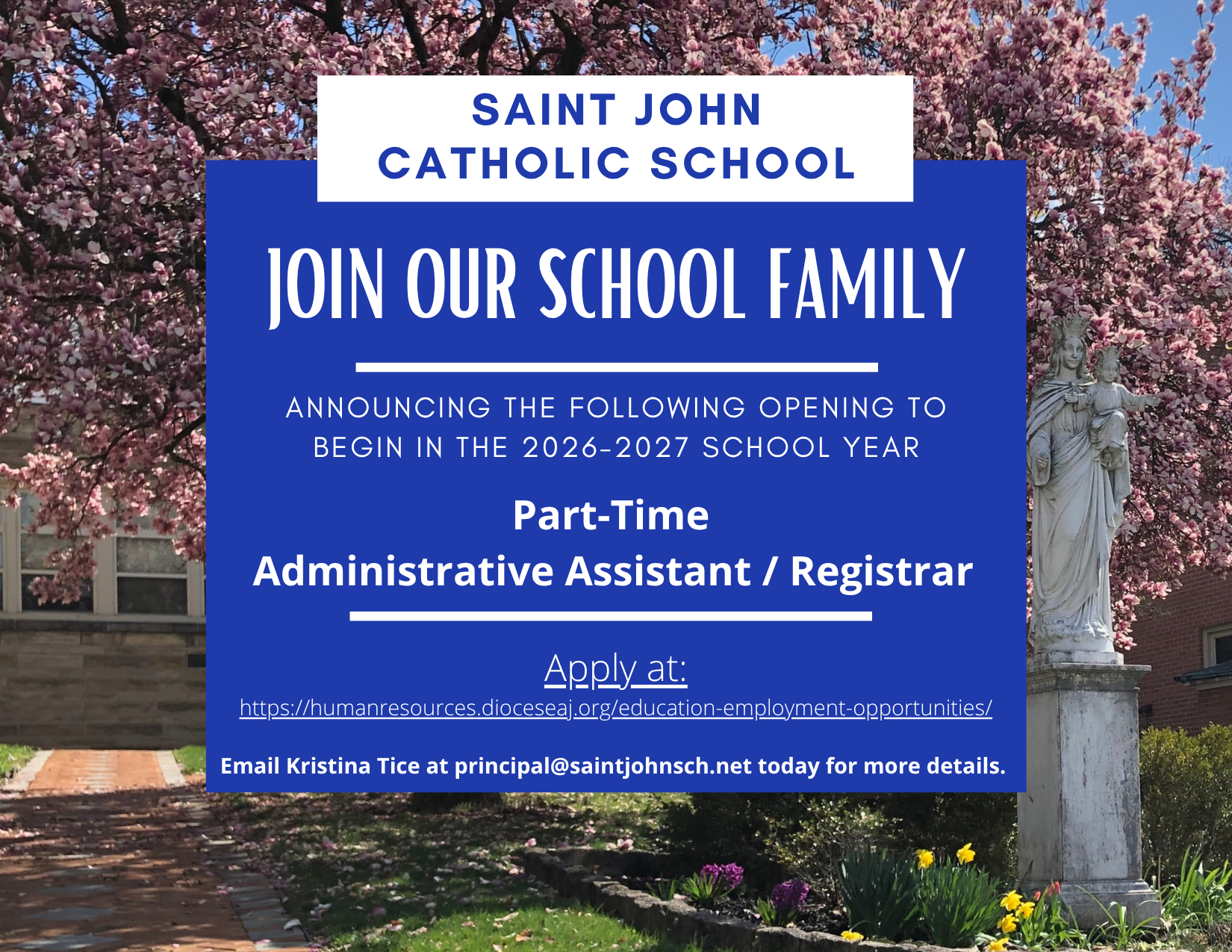 This recognition is such a wonderful affirmation of what we already know: Saint John Catholic School is a truly special place. But more than awards or titles, what makes us extraordinary is our families. The Saint John School Family is one of a kind. Your love, faith, and dedication to your children and to the success of our school shine every single day.